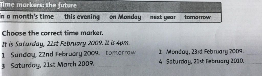 3. in a month's time (tháng sau, cụ thể ở đây là thứ 7 ngày 21 tháng 3 năm 2009)