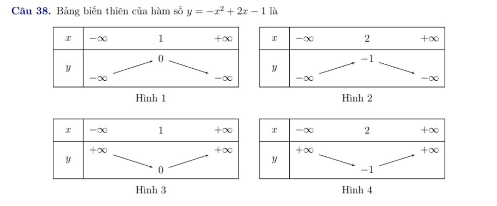 `=>` Hình `3` và `4` không phải bảng biến thiên của hàm số `y=-x^2+2x-1`
