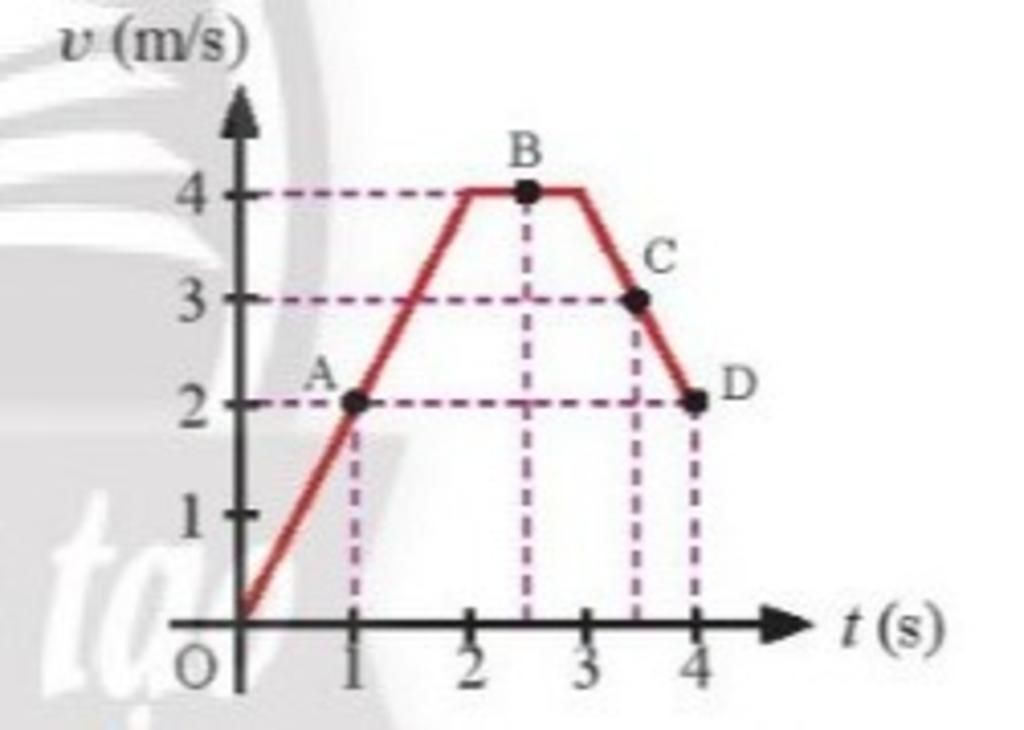 - Gia tốc: `a=(v-v_0)/(Delta t)=(4-0)/2=2` `(m//s^2)`