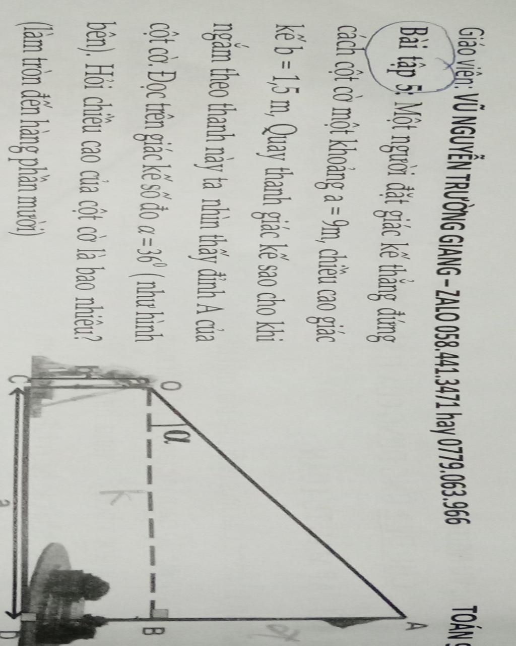 `=> AB = 9 . tan 36^o ≈ 6,5 m`