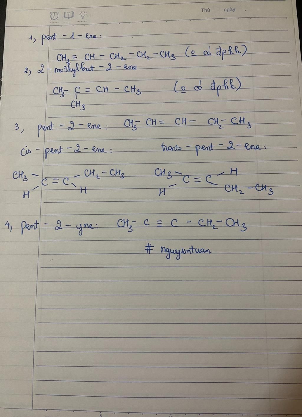 pent-1-ene; 2-methylbut-2-ene; trans pent-2-ene; pent-2-yne