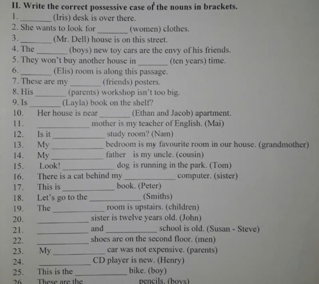 `@` Với danh từ số ít/danh từ số nhiều không kết thúc bằng -s : thêm (') và 's vào đằng sau để tạo ra sở hữu cách