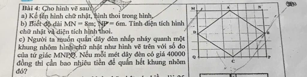 a) - Hình chữ nhật trong hình: hình chữ nhật ABCD, hình chữ nhật MNPQ