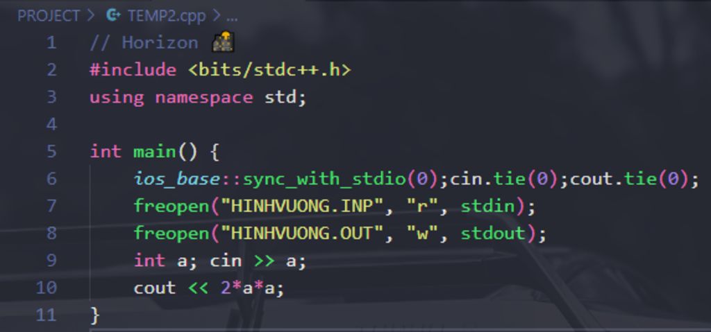 Dữ liệu vào: Tệp văn bản HINHVUONG.INP gồm duy nhất