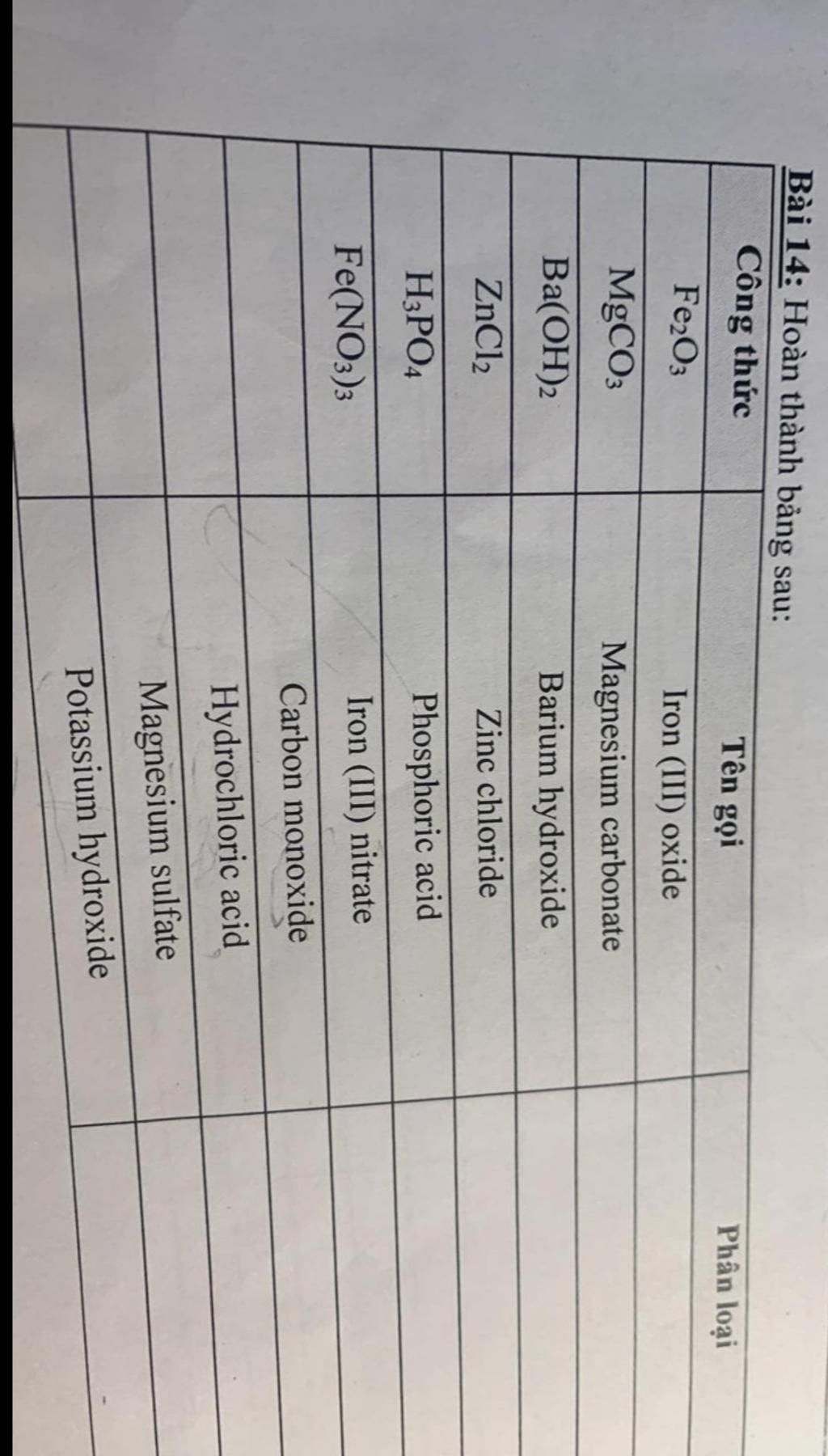 Bài 14: Hoàn thành bảng sau: