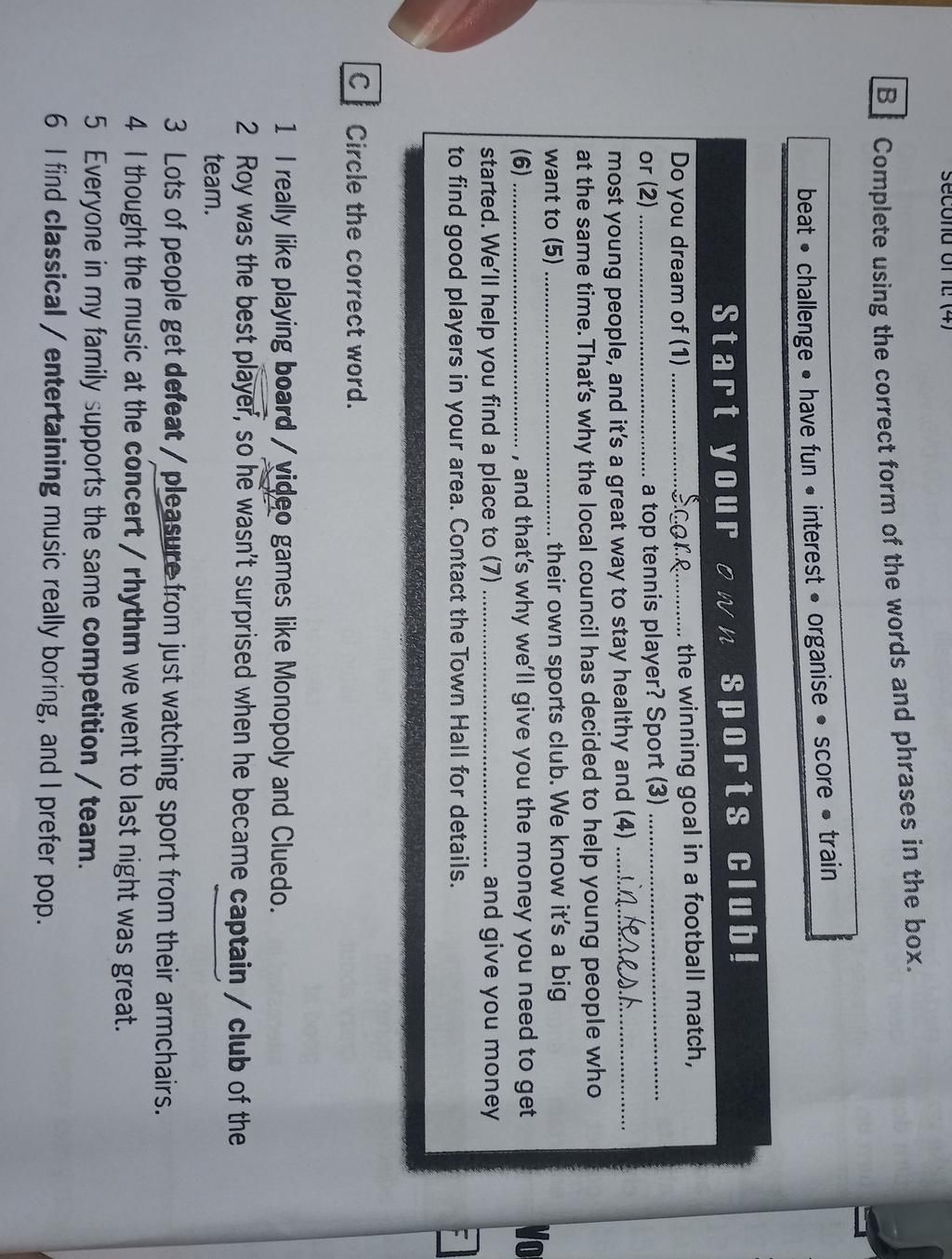 beat challenge have fun interest organise ⚫ score ⚫ train