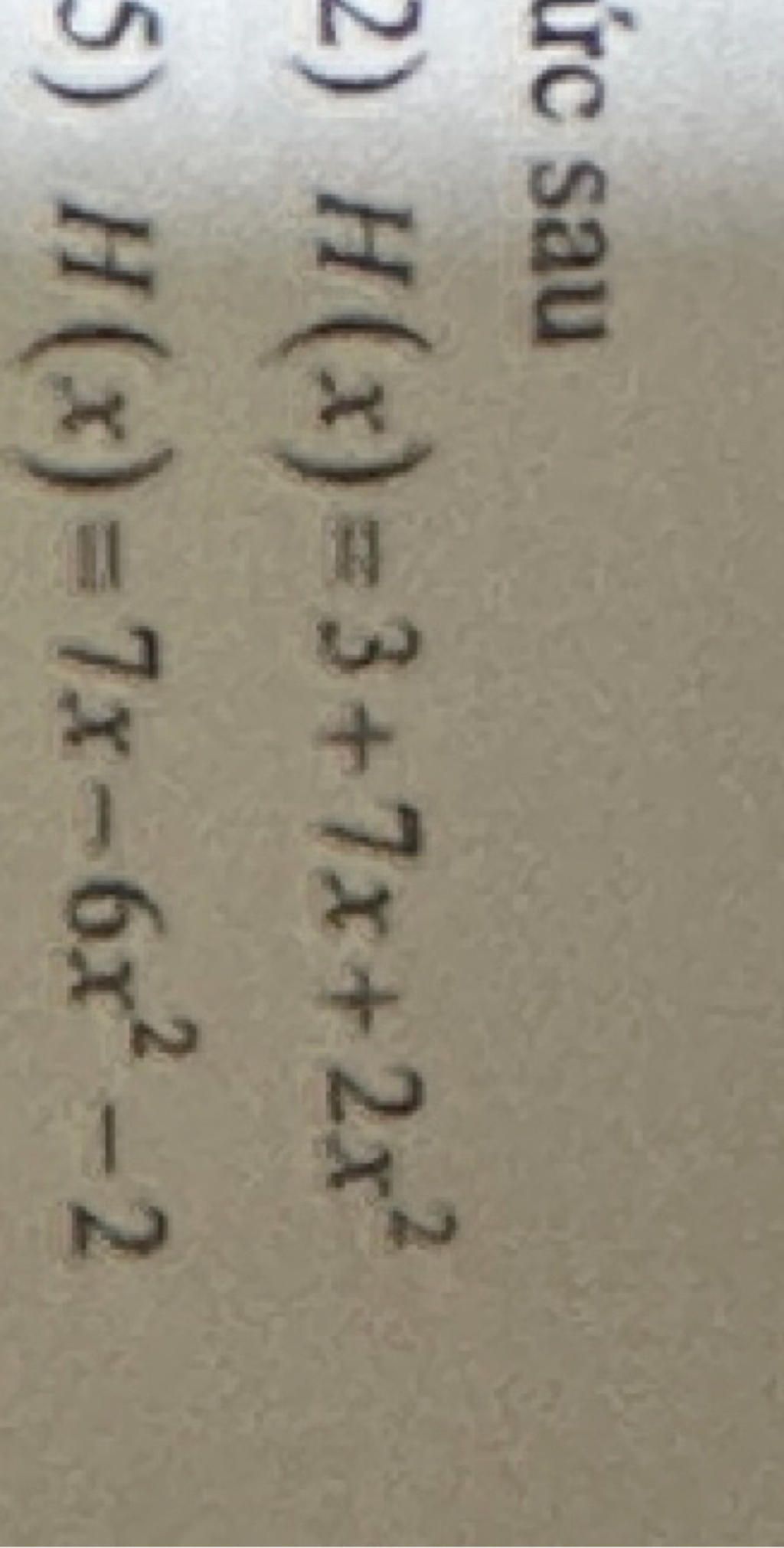 `5)` Để tìm nghiệm của `H(x)=7x-6x^2-2` thì `H(x)=7x-6x^2-2` phải bằng `0`
