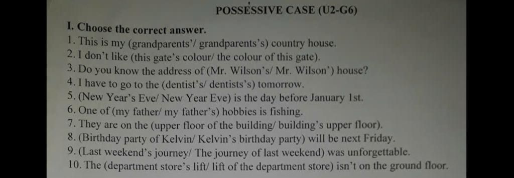 - Of + N : Khi chủ sở hữu là danh từ chỉ đồ vật , vật hoặc khi danh từ chi sự sở hữu được theo sau bởi một cụm từ , mệnh đề