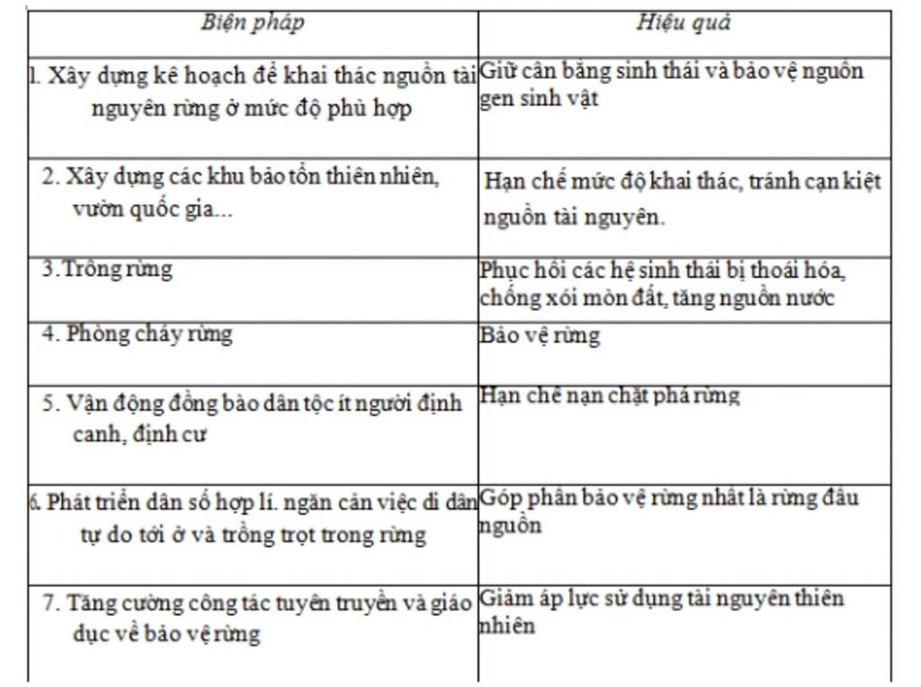 + Phát triển dân số hợp lí, ngăn việc di dân tự do tới ở và trồng trọt trong rừng.