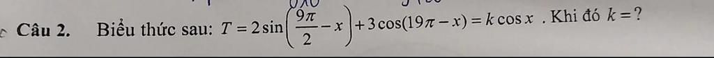 `T=2sin((9pi)/2-x)+3cos(19pi-x)`
