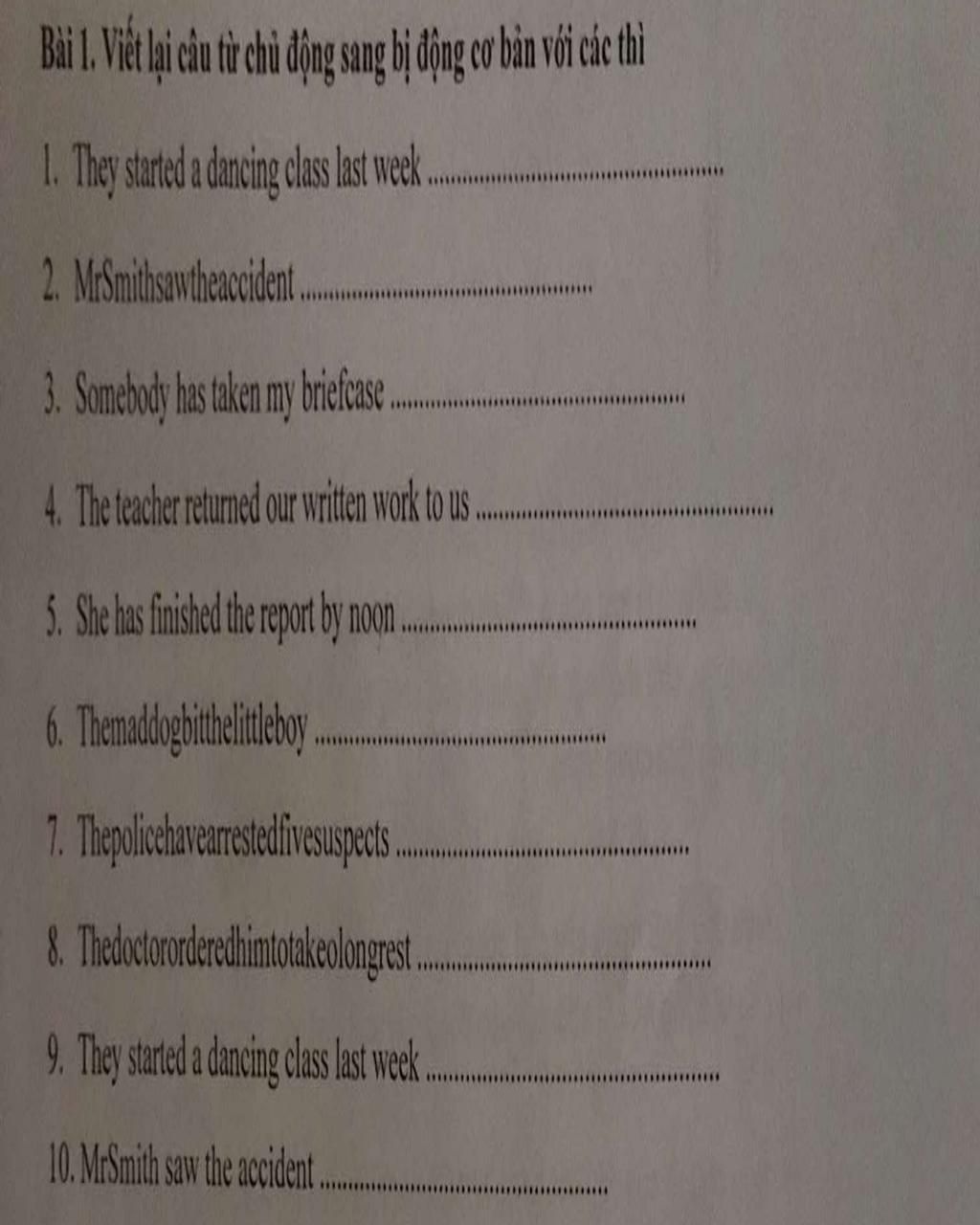 - Bị động QKD (last week): S + was/were + VpII + (by O)