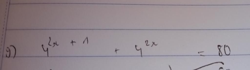 `=>4^{2 x} . 4 + 4^{2 x} = 80`
