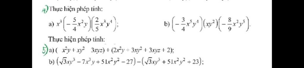 `x^3 (-5/4 x^2 y)(2/5 x^3 y^4)`