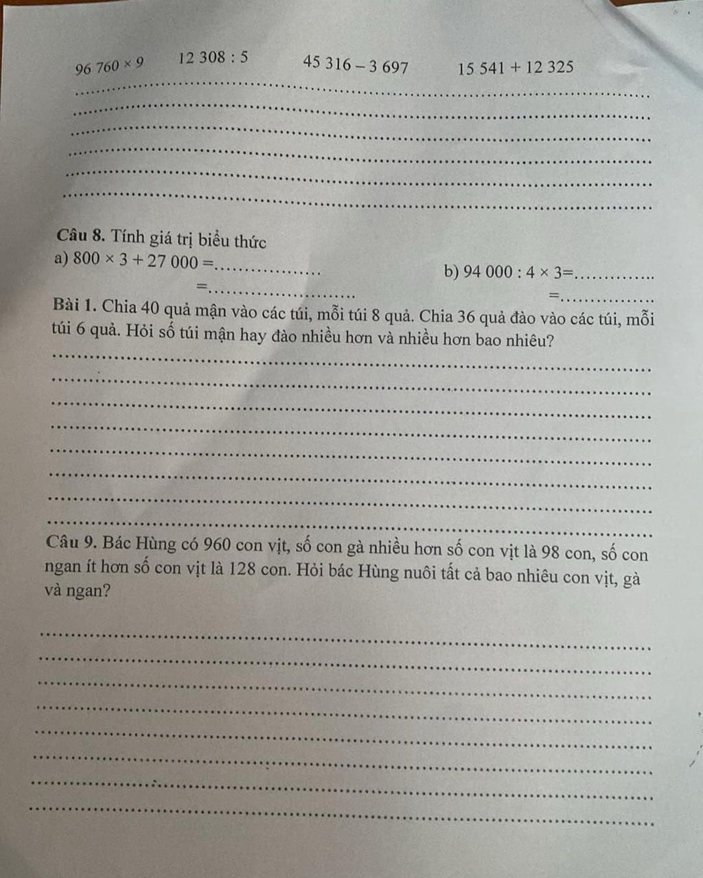 Đáp số.....