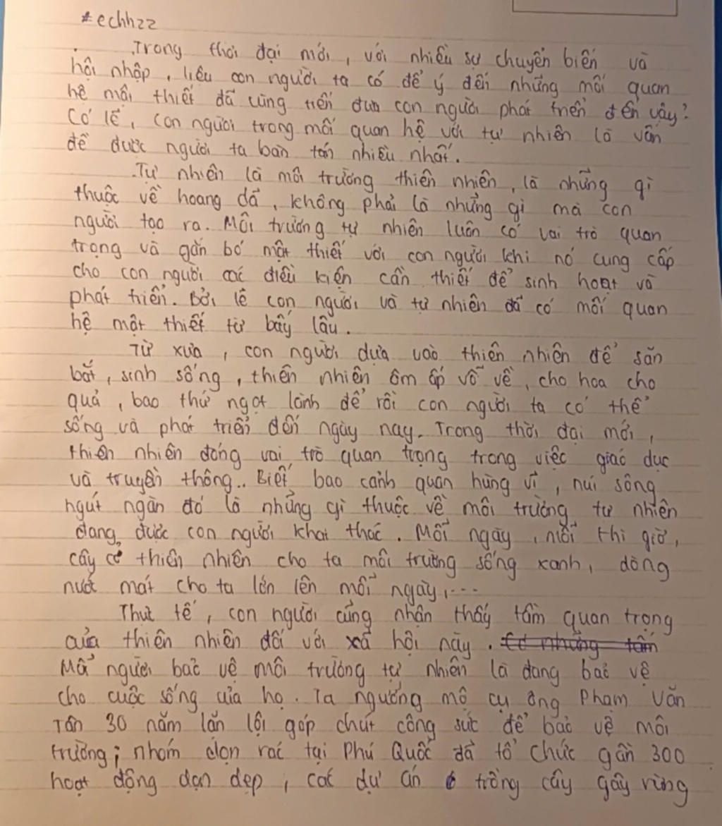 Viết bài văn nghị luận về một vấn đề cần giải quyết (con người trong mối quan hệ với tự nhiên) làm ngắn gọn đơn giản nhanh giúp e với ạ .Em cảm ơn