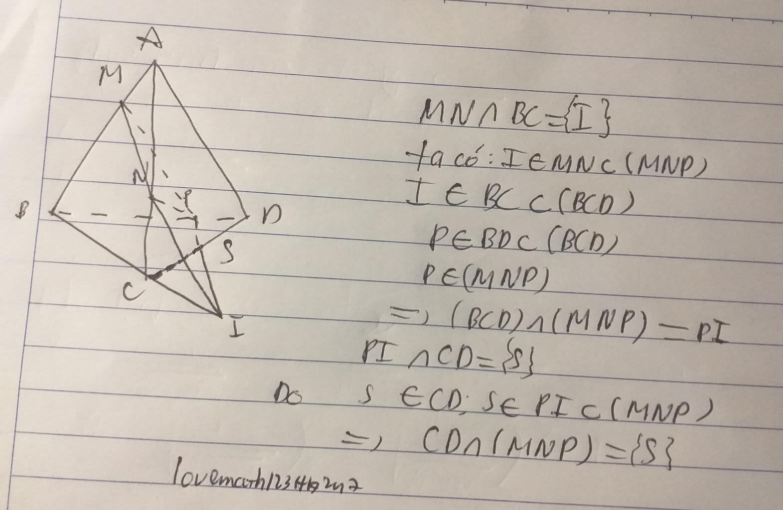 b. Tìm giao đểm của CD và mp (MNP) (Câu A mình làm r nên các b giải cho mình câu b với mình ghi cả câu a là vì mình nghĩ nó có liên quan đến câu b ) thks mn