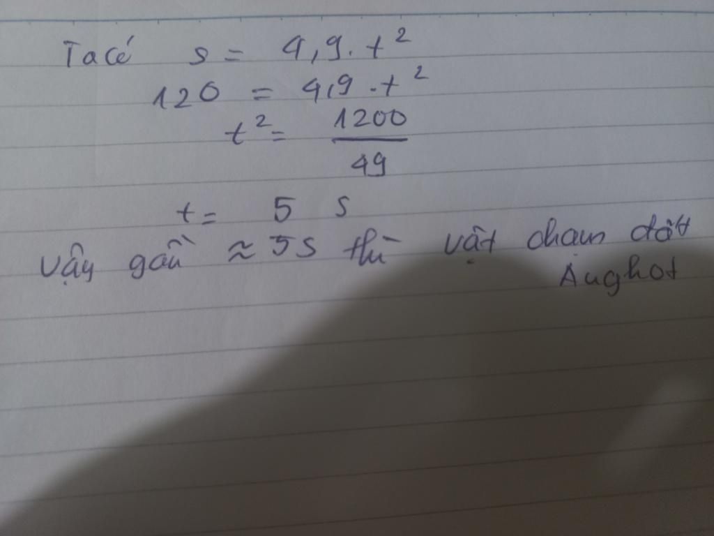 1) Một vật rơi tự do từ độ cao so với mặt đất là 120m. Bỏ qua sức cản của không khí, quãng đường chuyển động s (mét) của vật rơi tự do sau thời gian t được biểu diễn gần đúng bởi công thức s = 4,9t², trong đó t là thời gian tính bằng giây. Sau bao nhiêu giây kể từ khi bắt đầu rơi thì vật này chạm mặt đất (làm tròn kết quả đến chữ số hàng đơn vị)