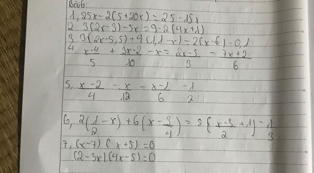 ⇔ $\dfrac{2(x-4)+3x-2-10x}{10}$ = $\dfrac{2(2x-5)-7x-2}{6}$