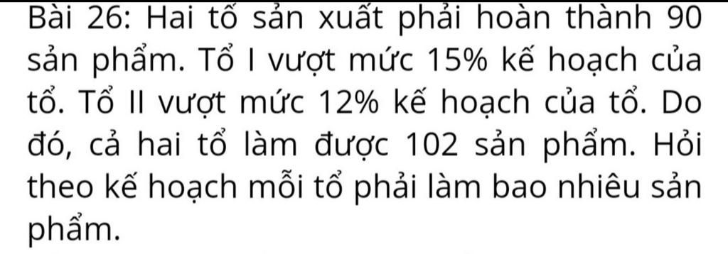 tổ `2` vượt `12%` thì tổng số sản phẩm tổ `2` làm là `y + 0,12y`