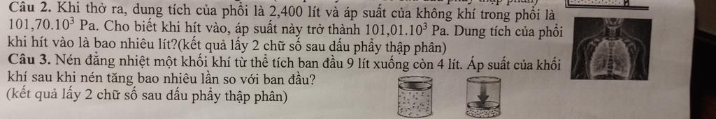Câu 2. Khi thở ra, dung tích của phổi là 2,400 lít và áp suất của không khí trong phổi là