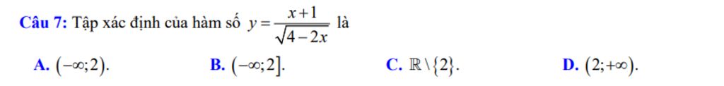 Ta cho hàm số `y=\frac{x+1}{\sqrt{4-2x}}`
