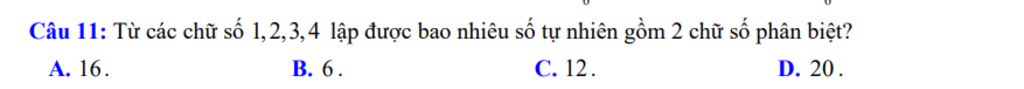 Để lập được số tự nhiên gồm `2` chữ số phân biệt, có :