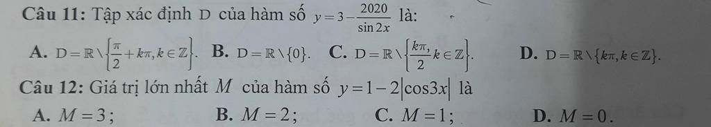 Câu 11: `y=3-2020/(\sin2x)`