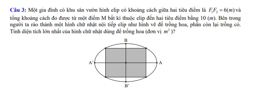 Gọi hình chữ nhật nội tiếp elip có các đỉnh là `A(x;y), B(-x;y), C(-x;-y), D(x;-y)` với `x, y > 0`