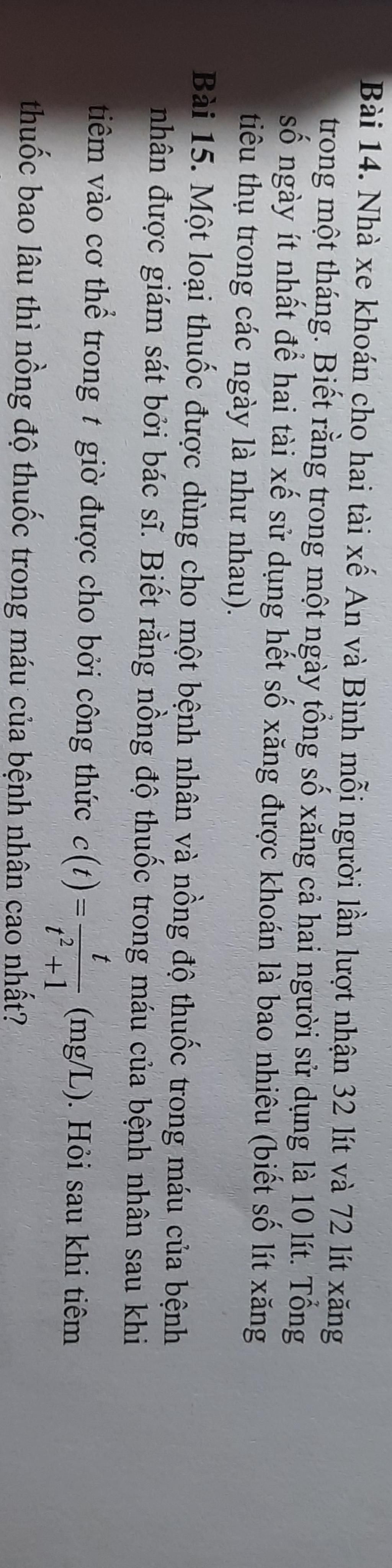 Bài 14. Nhà xe khoán cho hai tài xế An và Bình mỗi người lần lượt nhận 32 lít và 72 lít xăng