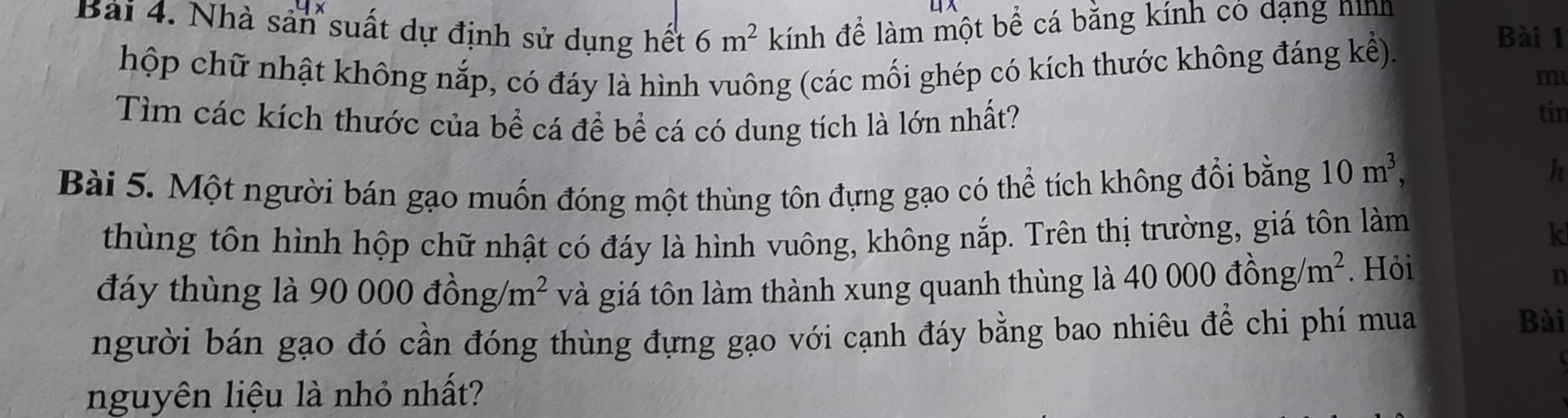 4. Nhà sản suất dự định sử dụng hết 6 m2 kính để làm một bể cá băng kính có dạng