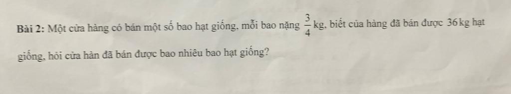 ` 36 ÷ 3/4 = 48 ` $ ( Bao hạt giống ) $