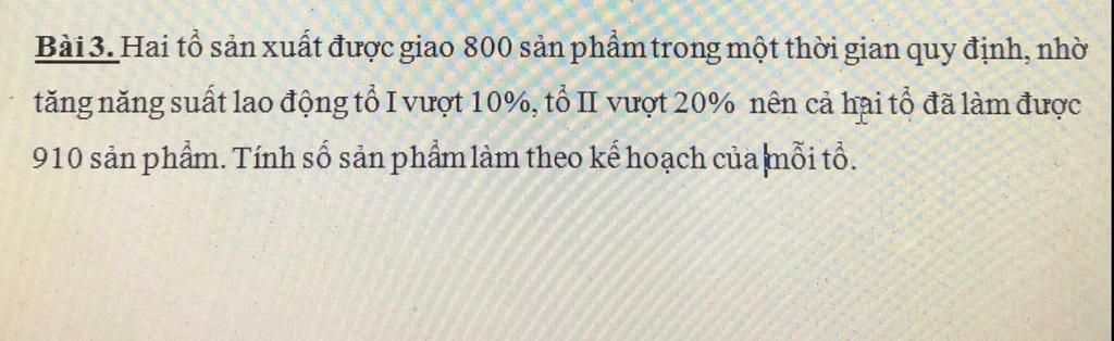 +) Tổ 1 vượt mức 10/100, tổ 2 vượt mức 20/100 nên làm được 910