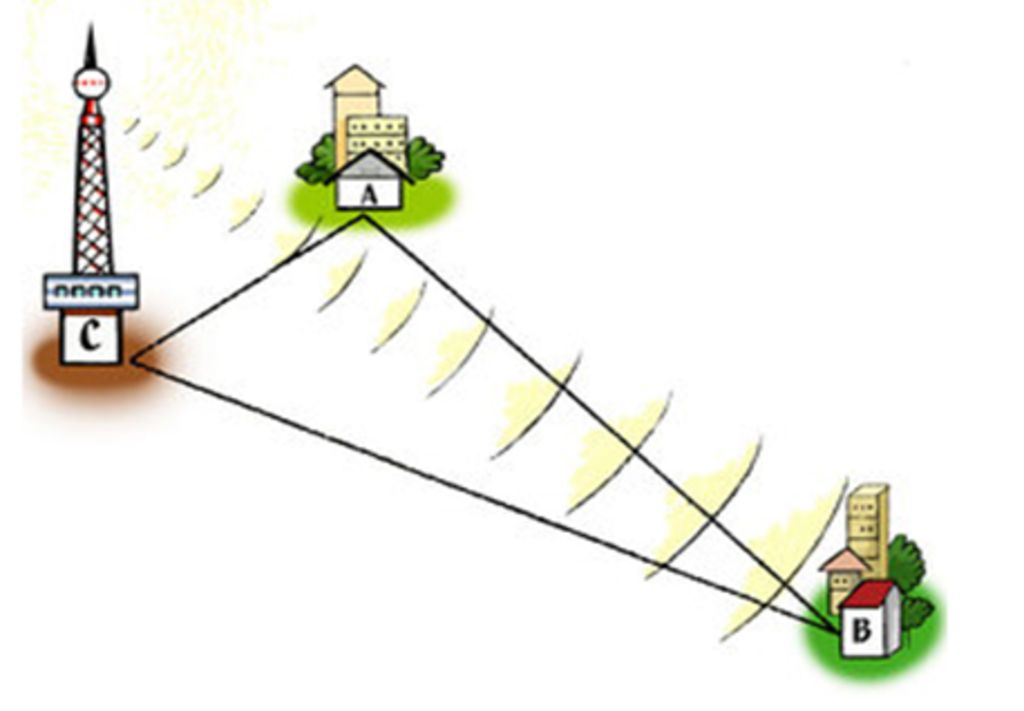 A. Có, vì CB - CA = 70 -30 =40km = bán kính hoạt động của trạm phát sóng
