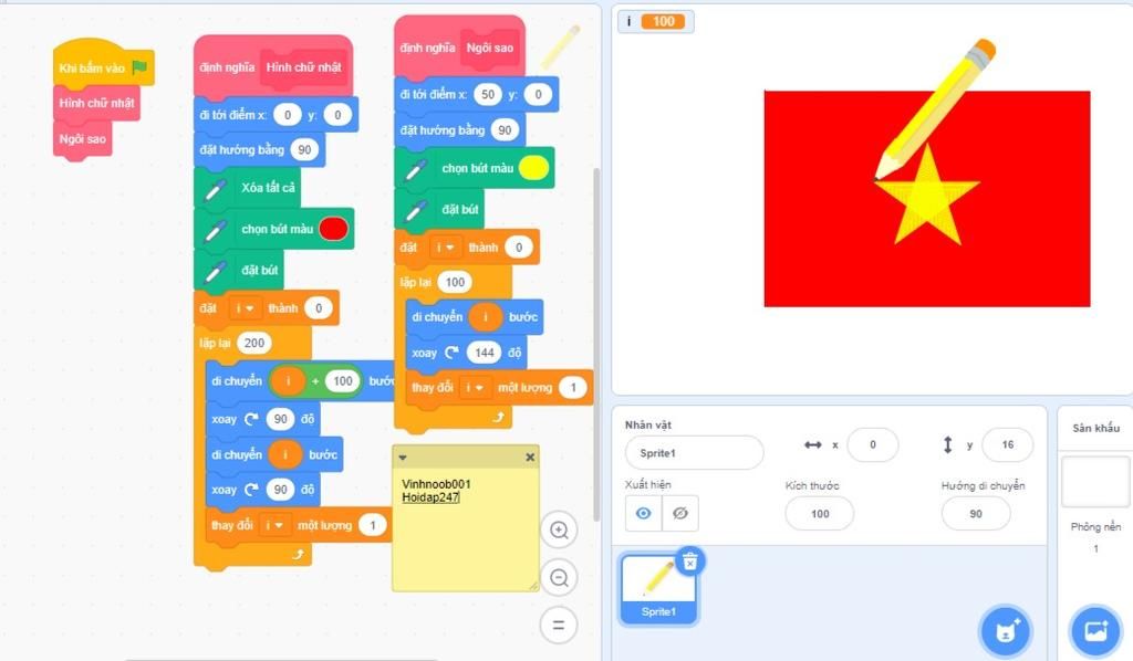 Sử dụng Scratch vẽ hình lá cờ Việt Nam