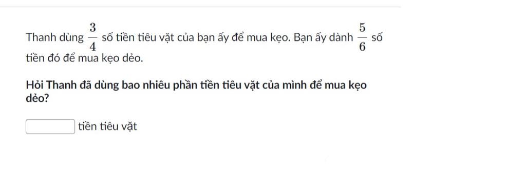 `3/4 xx 5/6 = 5/8` `(` tiền tiêu vặt `)`