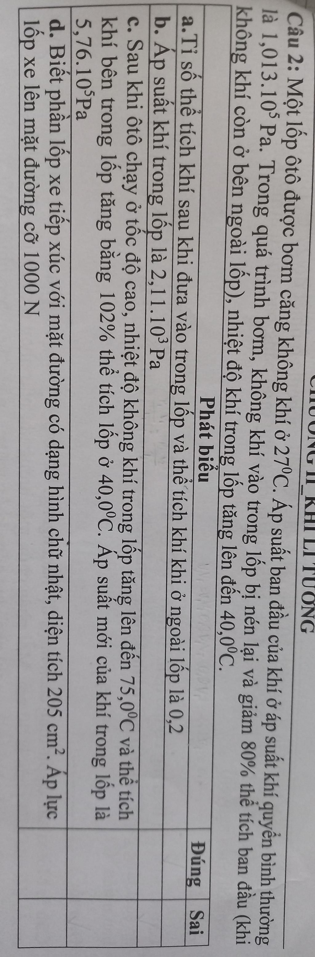 Thể tích khí sau khi đưa vào trong lốp là: