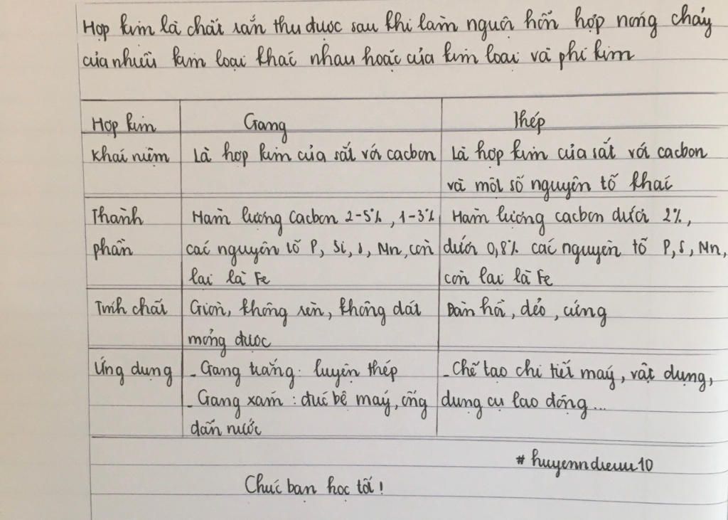 +Gang cứng và dòn hơn sắt.Có hai loại gang: gang trắng và gang xám. Gang trắng dùng để luyện thép, gang xám dùng để đúc bệ máy, ống dẫn nước,…