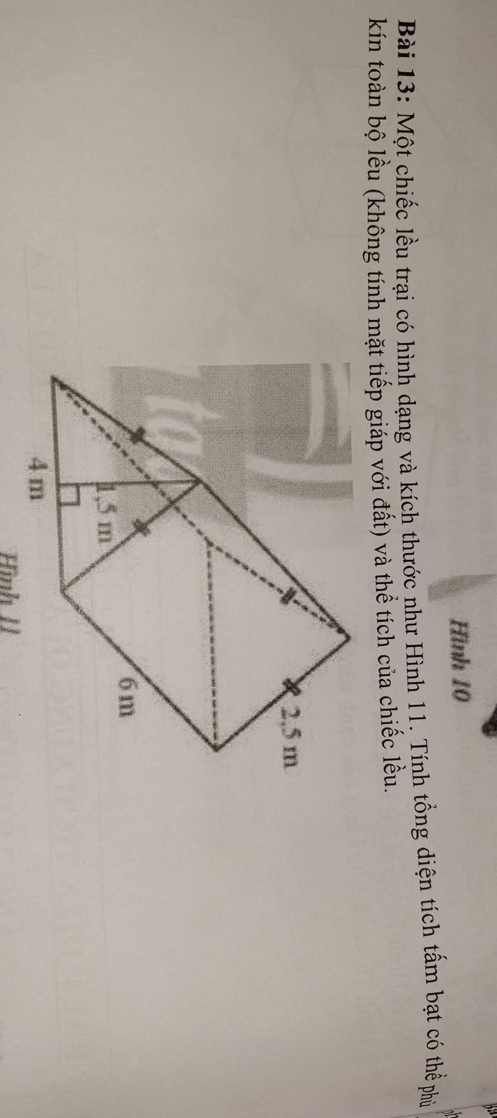 Tổng diện tích tấm bạt có thể phủ kín toàn bộ lều là `36 m^2`