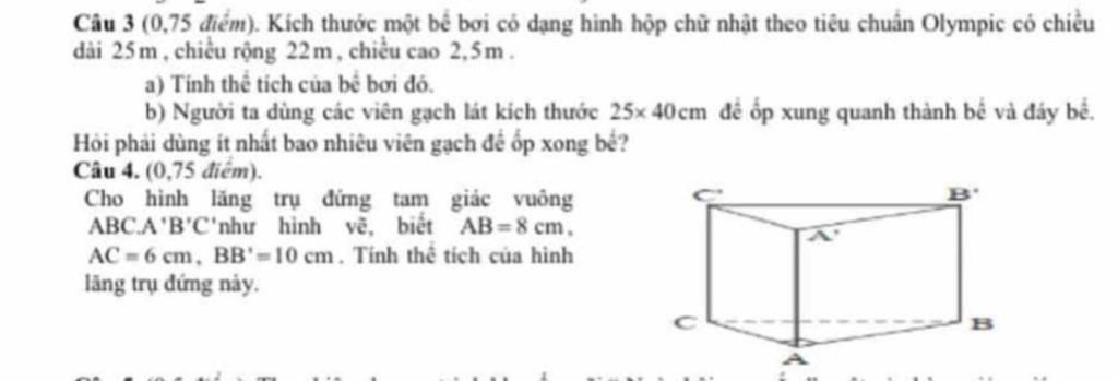 vậy Thể tích hình lăng trụ đứng tam giác ABCA'B'C'là:240 cm3