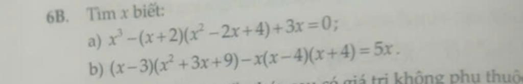 `b)` `(x-3)(x^2+3x+9) -x(x-4)(x+4)=5x`