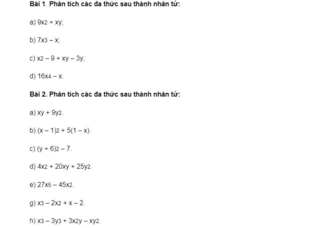 Bài 1. Phân tích các đa thức sau thành nhân tử:
