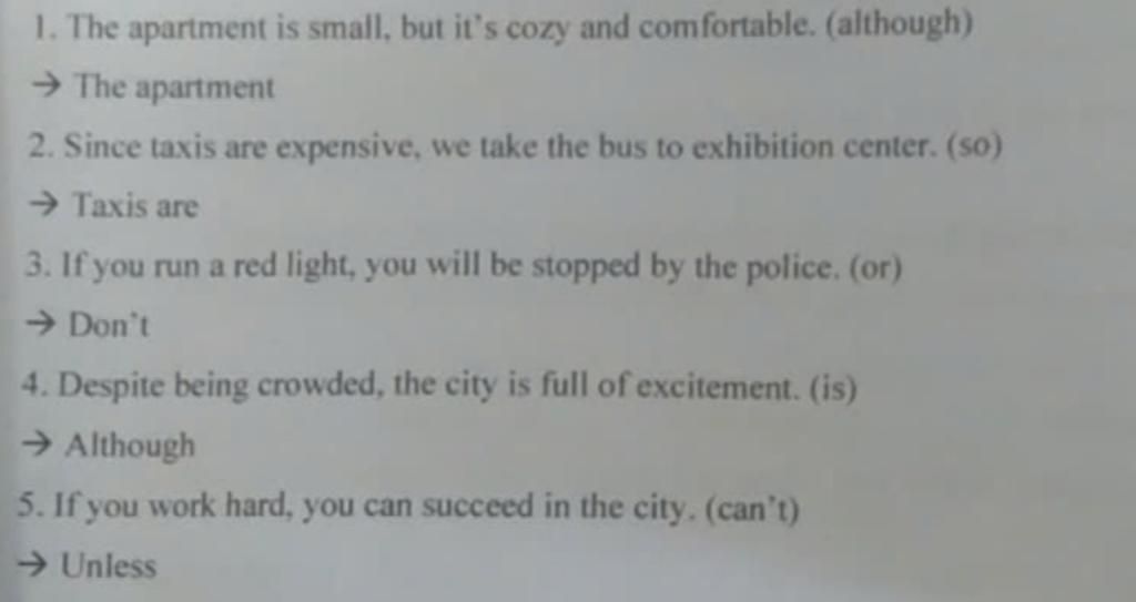 Viết lại các từ sau mà không thay đổi nghĩa, từ trong ngoặc