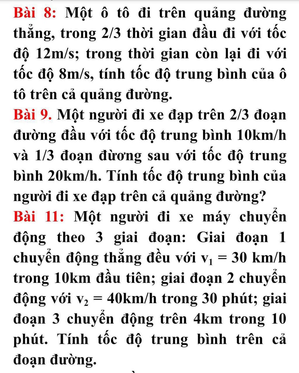 $v_{tb} = \dfrac{s_1 + s_2 + s_3}{t_1 + t_2 + t_3} = \dfrac{10 + 20 + 4}{\dfrac{1}{3} + \dfrac{1}{2} + \dfrac{1}{6}} = 34 (km/h)$