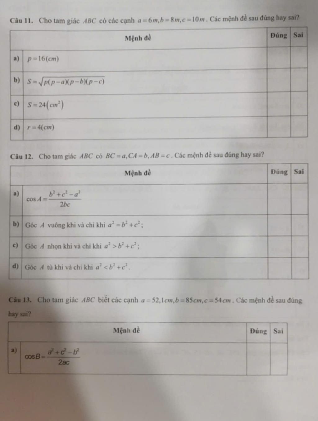 Câu 11: Có: `p={a++b+c}/{2}={6+8+10}/{2}=12` cm