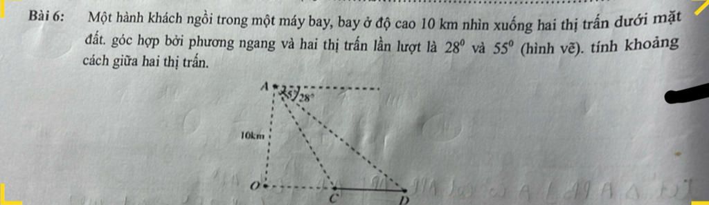 Vậy khoảng cách giữa hai thị trấn `CD` là `11,8\ km`