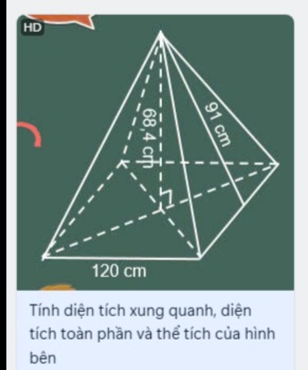 `V=1/3 .S_(đáy) .h=1/3 .120^2 .68,4= 328320 cm^3`