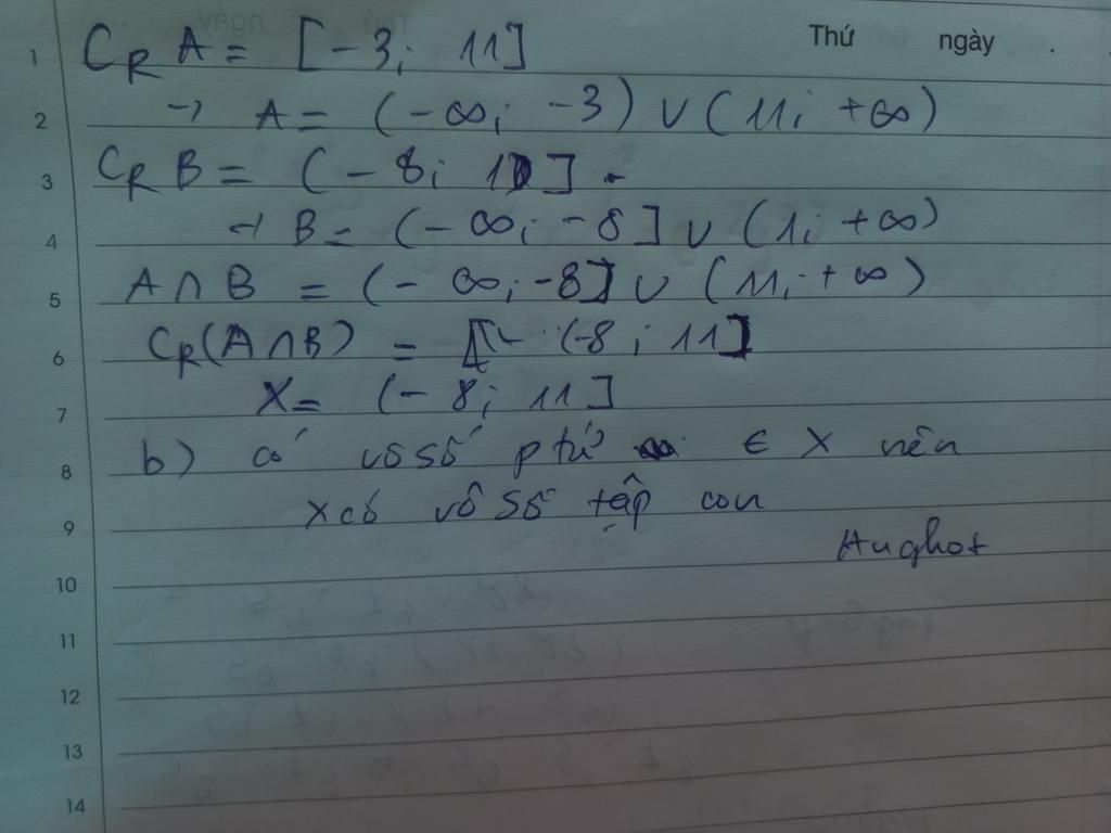 b.Ta có: $X=(-8, 11]$ có vô số phần tử và vô số tập con