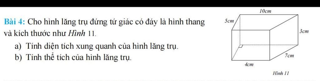 Bài 4: Cho hình lăng trụ đứng tứ giác có đáy là hình thang