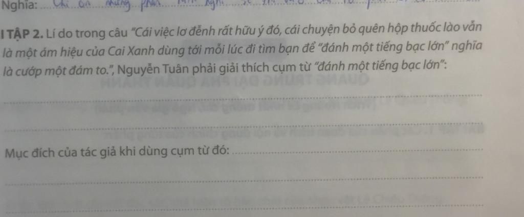 -Lí do trong câu " Cái việc lơ đễnh rất hữu ý đó cái chuyện bỏ quên hộp thuốc lào vẫn là một ám hiệu của Cai Xanh dùng tới mỗi lúc đi tìm bạn để " đánh một tiếng bạc lớn" nghĩa là ... to". Nguyễn Tuân phải giải thích cụm từ " đánh một tiếng bạc lớn": khi dùng biệt ngữ đó, tác giả biết rằng, số đông độc giả sẽ cảm thấy lạ, khó hiểu