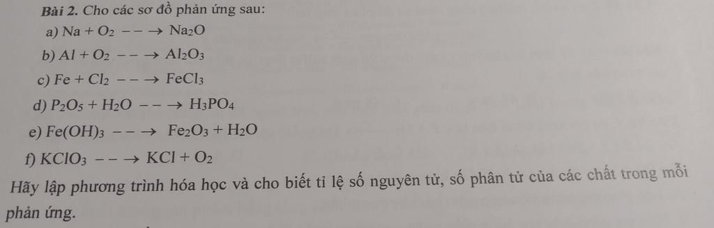 f) `2KClO_3 \overset(t^o)(->) 2KCl + 3O_2`